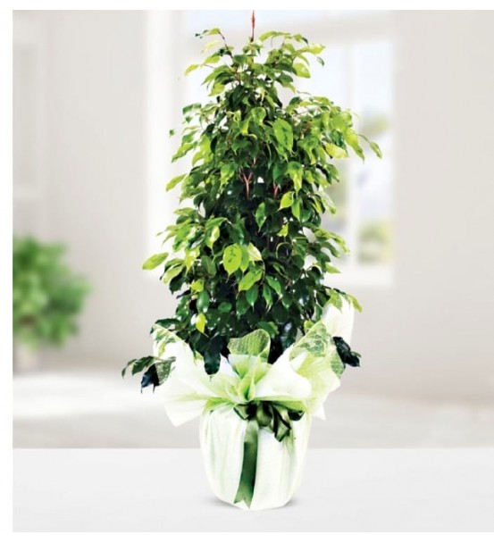 İç mekanların sıradanlığını bozmak ve hareket kazandırmak istediğimiz zamanlarda gözdemiz olacak, 1 metre boyu ile görkemli ve bir o kadar da şık Ficus Benjamin, salon bitkisi sevenlere ideal, çiçek gönderimleriniz için