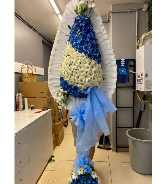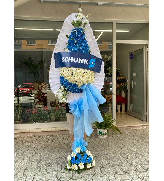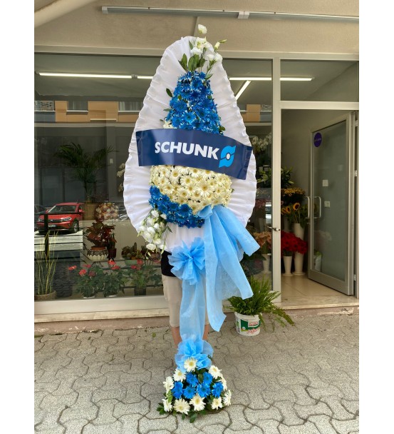 Mavi - Beyaz tonlarda hazırladığımız açılış düğün çelengi. Her türlü organizasyonda sizi veya firmanızı temsil etmek üzere taze çiçeklerle özenle hazırlanan çelenk istediğiniz adrese tam zamanında gönderilmektedir.
