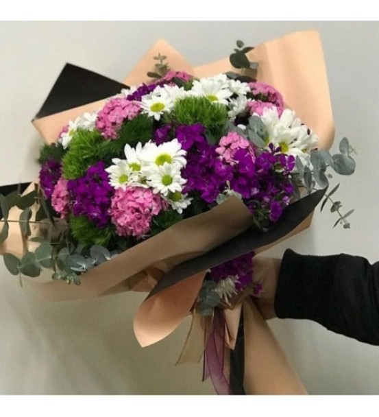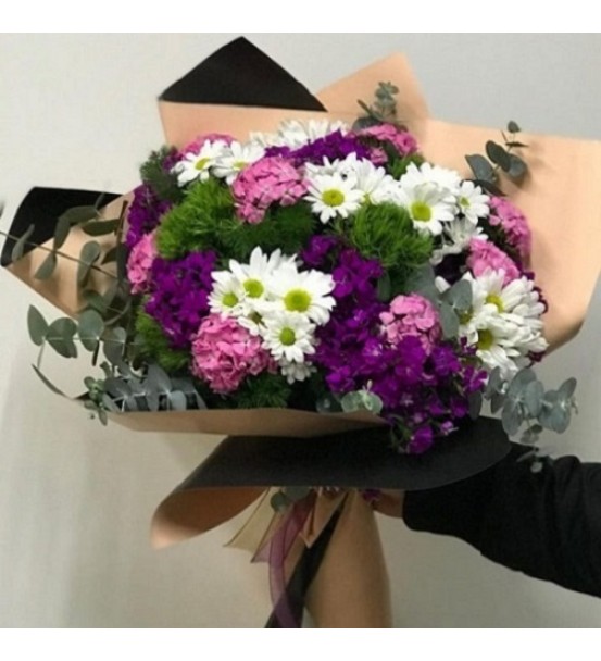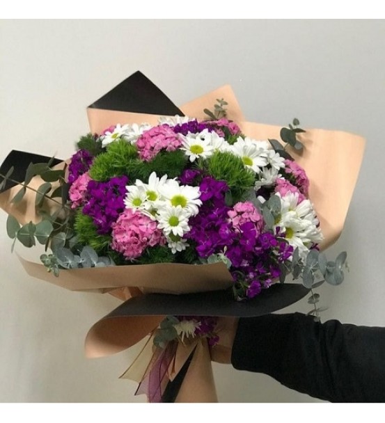 Renkli kır çiçeklerinden çok şirin buket sevdiğinizi mutlu etmeye yeter. Sevgiyi ifade etmek için pahalı hediyelere gerek yok. İçten duygularla sunulan bir buket çiçek hislerinize tercüman olabilir. Sevdiğinize sevginizi buketle sunmak isterseniz, şık ambalajıyla görselliği zenginleştirilen hüsnüyusuflar, cipsofilya, yeşil garnitürlerle hazırlanan çiçek demetimiz tam size göre. Misafirliğe giderken elinizde çiçekle gitmek için de renkli buket en uygun renk ve çiçeklerden oluşuyor.