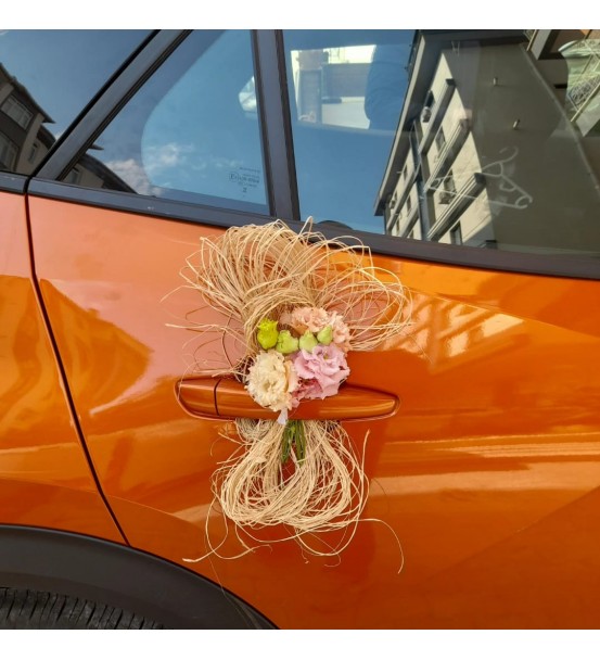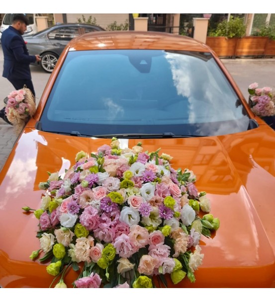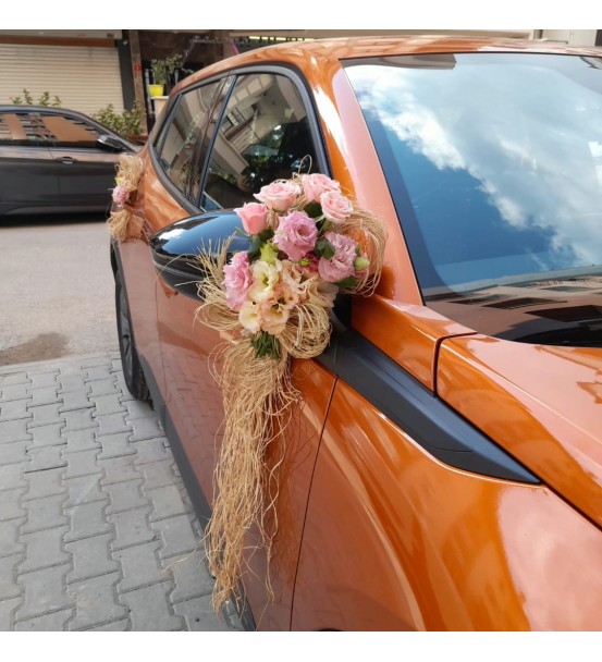 Gelin araç süslemesinde en çok ilgi gören modellerimiz arasında lisyantus çiçekli olanı görüyorsunuz. Gelin arabasının önünde lisyantus çiçeklerinden oluşan gösterişli aranjman yer alıyor. Kapı kolları ve aynalara Arka cama gelin ve damadın adlarının papatyalardan yazılmış baş harfleri yazıldı. Eğer hayatınızın en anlamlı gününde gelin aracınız çiçeklerle kaplansın diyorsanız hemen online veya telefonla siparişinizi oluşturun.