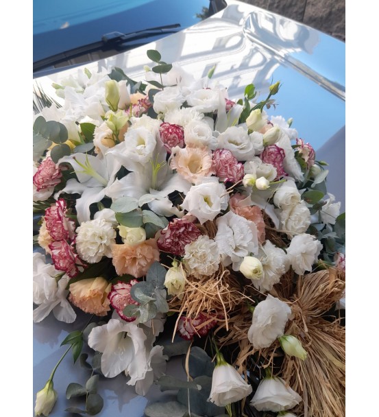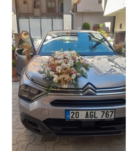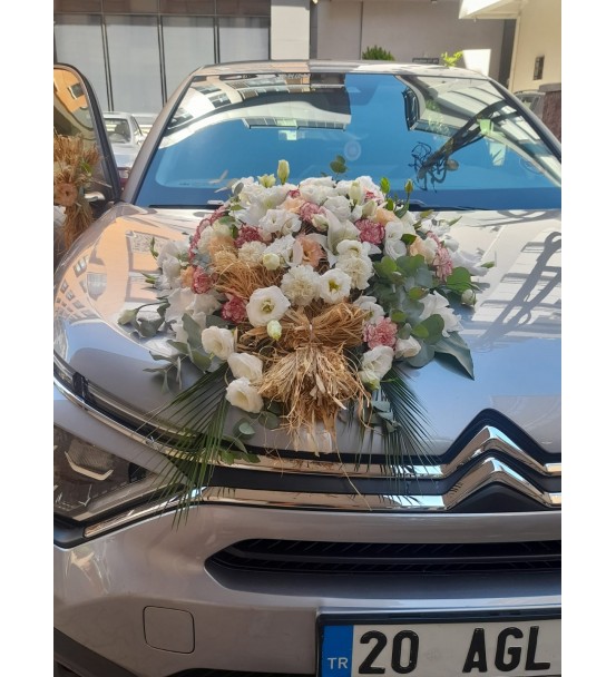 Yeni başlangıçlara yelken açan gelin-damat için özenle hazırlanan gelin arabası modelimiz. Oval şekilde canlı ve diri çiçeklerle hazırlanan aranjman gelin arabasının ön kısmında yer alıyor. Ortanca, astomerya, lisyantus çiçekleri ile özenle hazırlanan aranjmanla süslenen gelin arabası modelinde arka camda papatyalardan gelin ve damat baş harfleri yer alıyor.MALTEPE GELİN ARABASİ SİPARİSİ ,MALTEPE BAĞLARBASİ ÇİÇEK ŞİPARISI